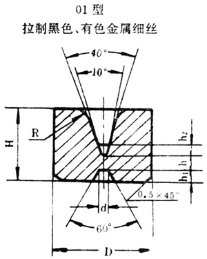 (3)在同一型號中,所表示的參數(shù)(如內(nèi)徑)有重現(xiàn)時(shí),則在重現(xiàn)規(guī)格的參數(shù)后加“-”,再寫上其外徑值,以示區(qū)別。如11-0.4和11-0.4-13,兩者均為內(nèi)徑0.4毫米的11型圓孔模,但外徑不同。前者外徑為8毫米,后者外徑為13毫米。